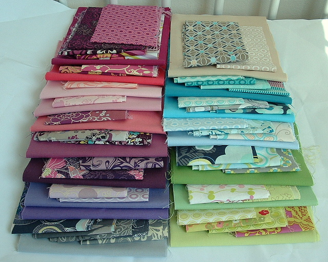 A když jsme u těch barev. Včera jsem řízla do balíčku látek od Kataríny. Zatím se kochám všema barvama a snažím se vymyslet jak to celé bude vypadat. Dokonce jsem se pustila do propočtu a tohle by měly být 3/4 celého topu.